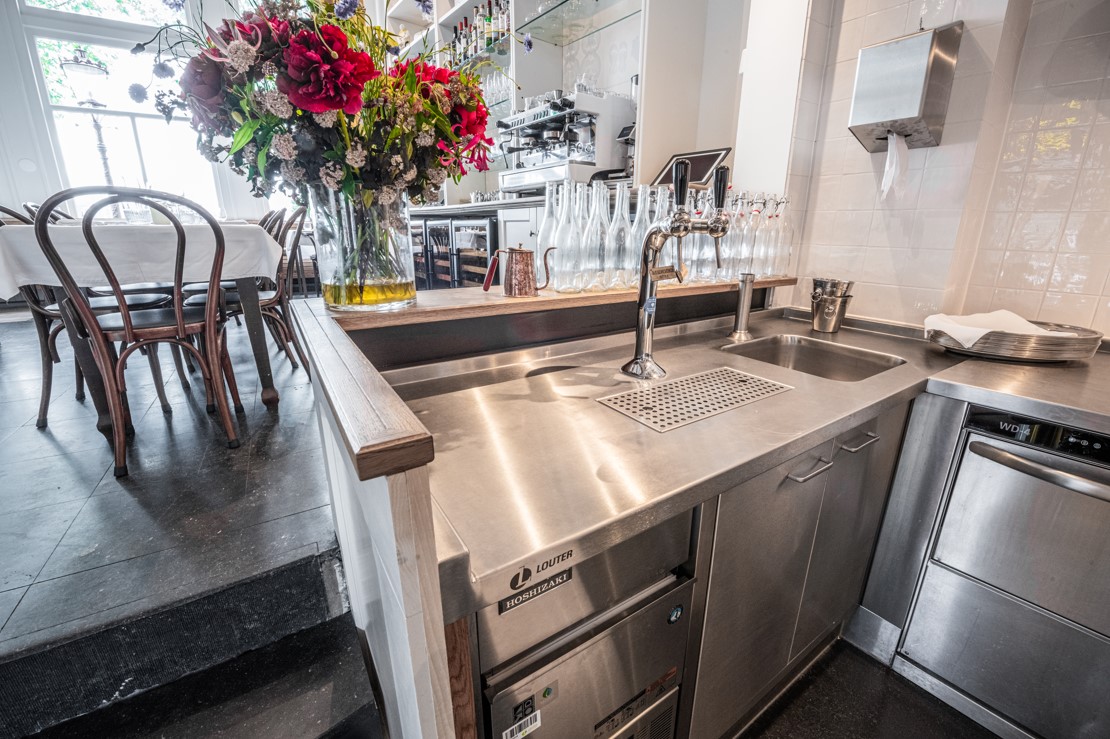 Dit restaurant heeft een bijzondere sfeer doordat je als gast direct aan de keuken zit om te eten. Hierdoor zie je de volledige bereiding van de maaltijd voor je neus. Dit gaf ook uitdagingen om de keuken te plaatsen